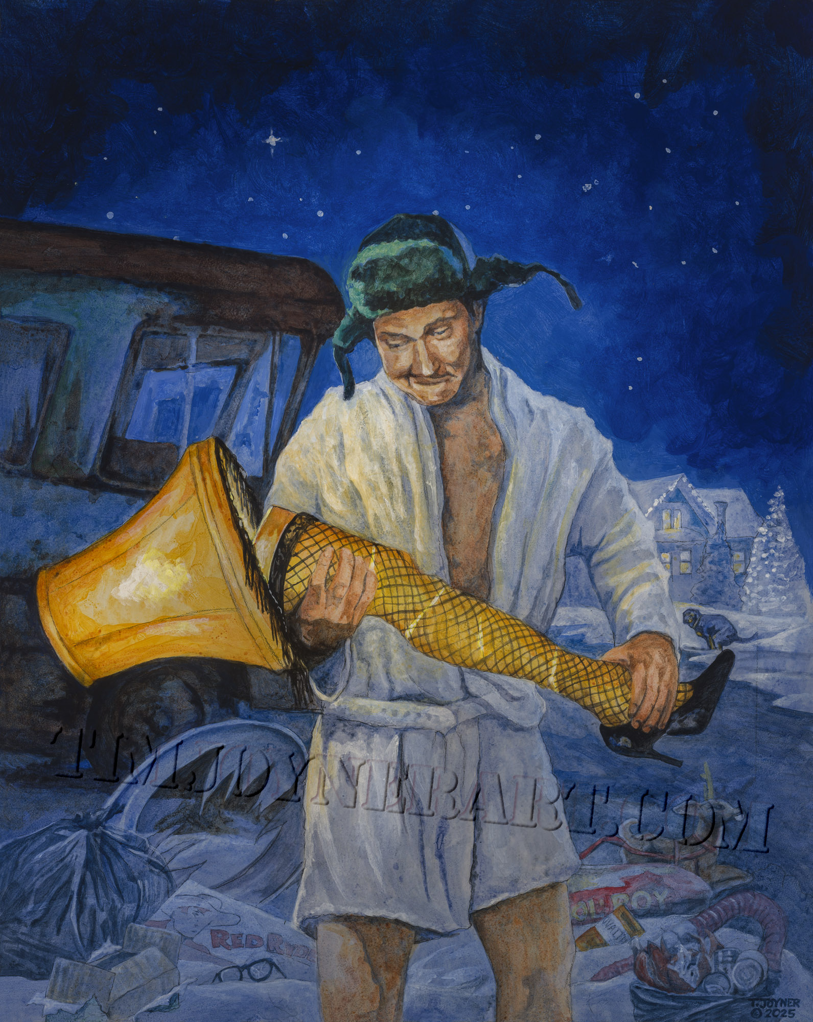 Another Christmas Miracle. What could be better than Cousin Eddie finding the broken leg lamp! This hilarious mashup of the two best Christmas classics is sure to be a favorite every holiday season. It is available on my Fine Art America website. This is a direct link to the product page. There are prints, cards, T-shirts, coffee mugs, and jigsaw puzzles available. They also offer framed metal prints, etc…